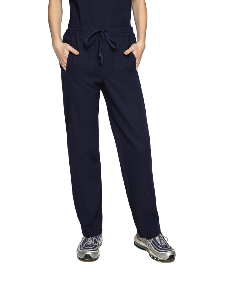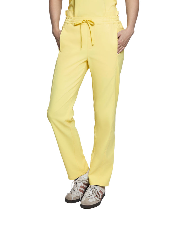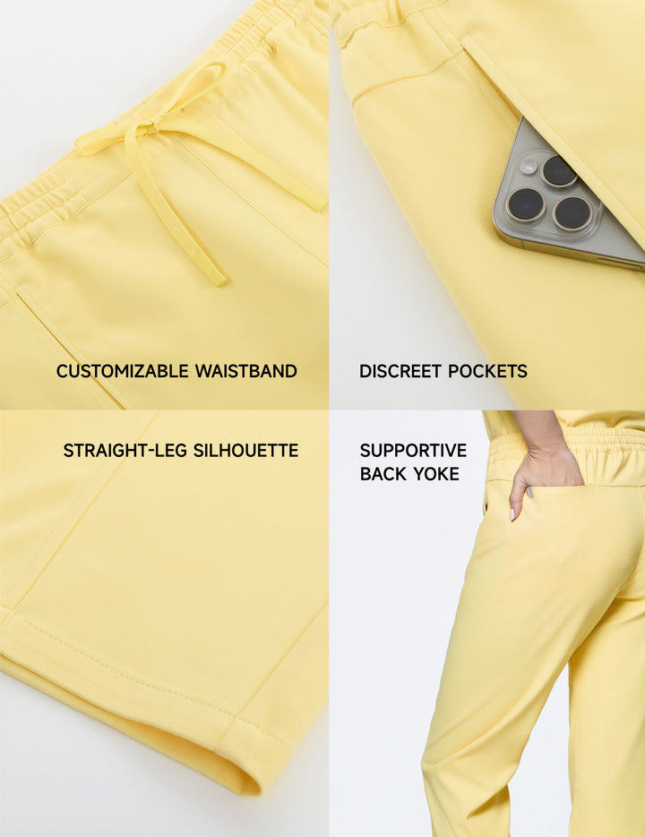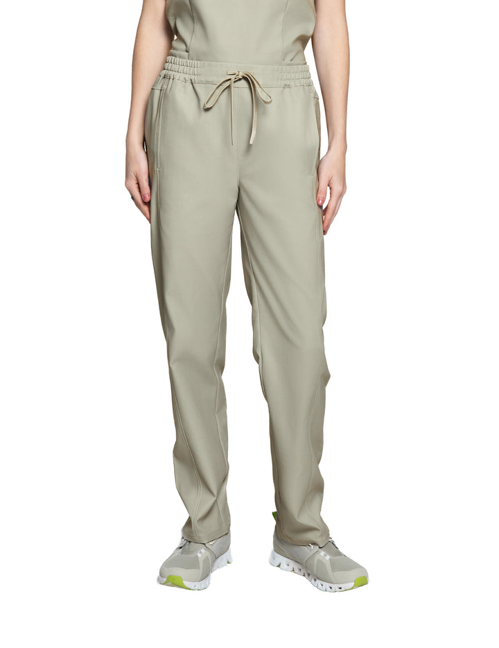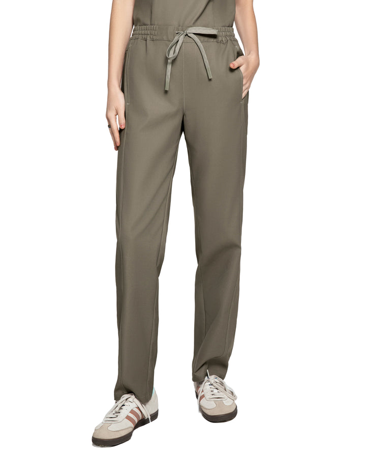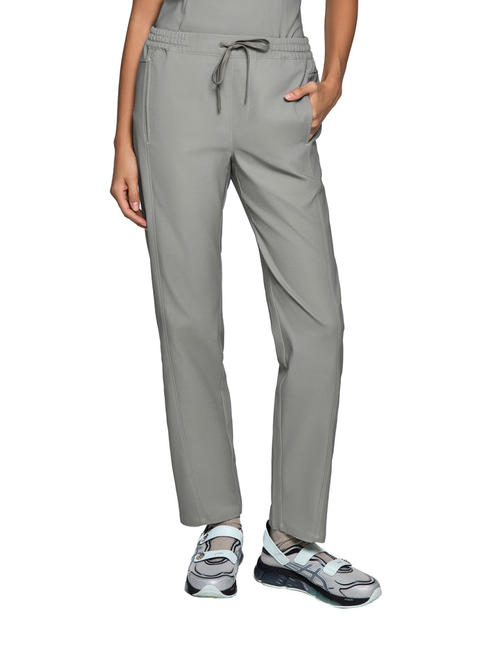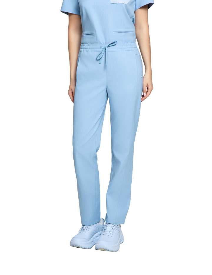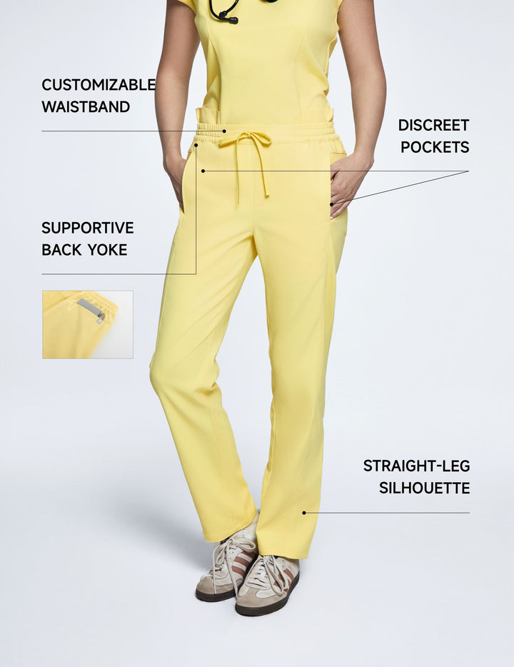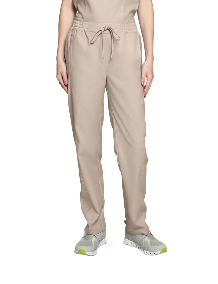 ADJUSTABLE WAIST – Features an elastic waistband with a drawstring for a customized fit that remains sleek and professional at the front.