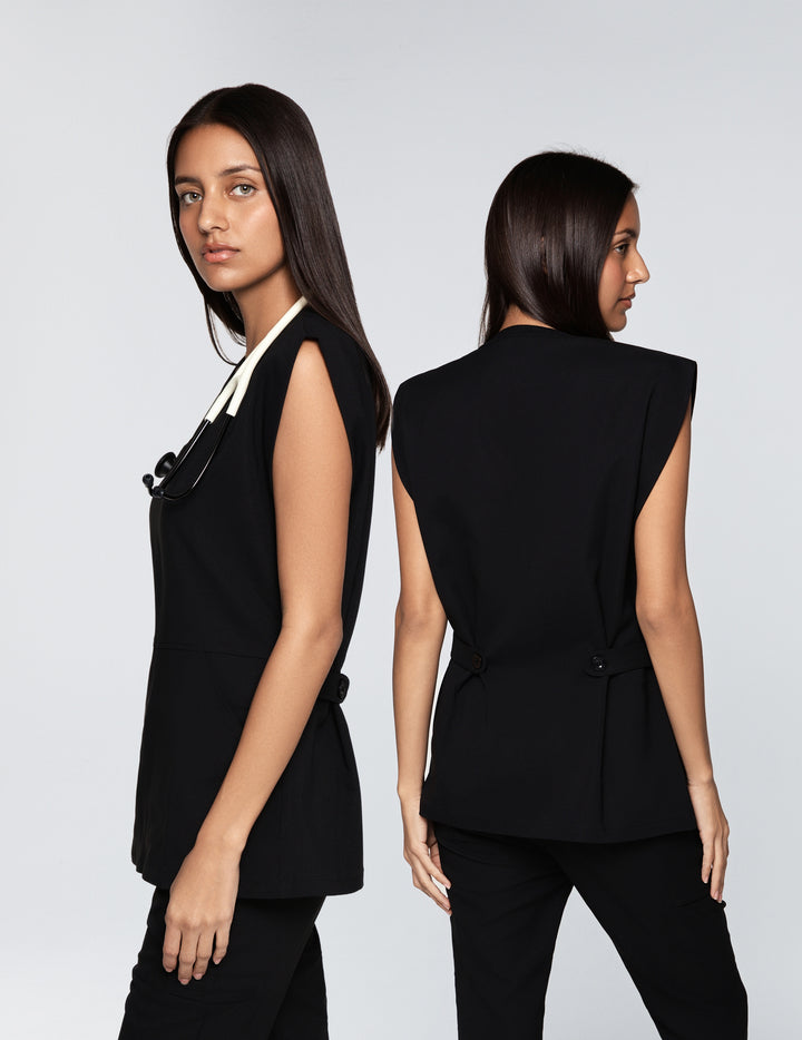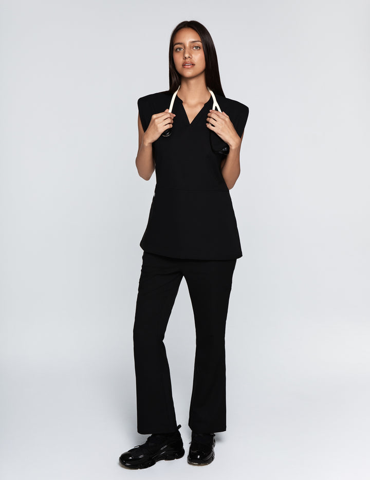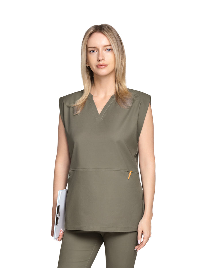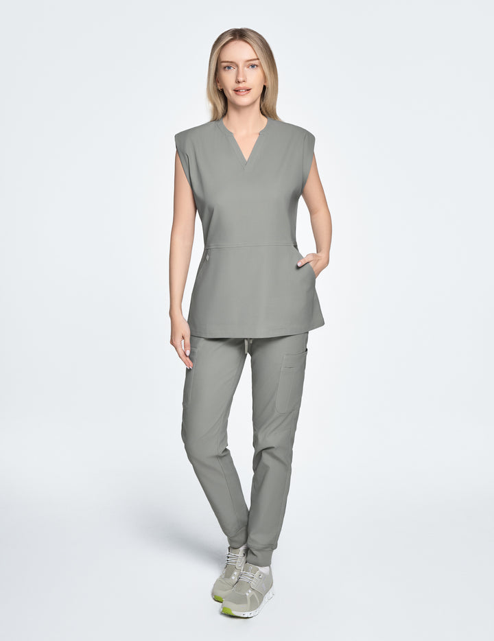 HIGH-PERFORMANCE FABRIC – Made from advanced AcaTEX fabric, blending 77% recycled polyester, 22% bio-based Sorona fibers, and 1% conductive filament. It is high-stretch, breathable, soft, and lightweight for all-day comfort. The durable construction withstands frequent washing without fading and dries quickly. Conductive filament offers static-reducing properties, while integrated Silvadur technology maintains freshness. This scrub top is ideal for those who value practicality and style.