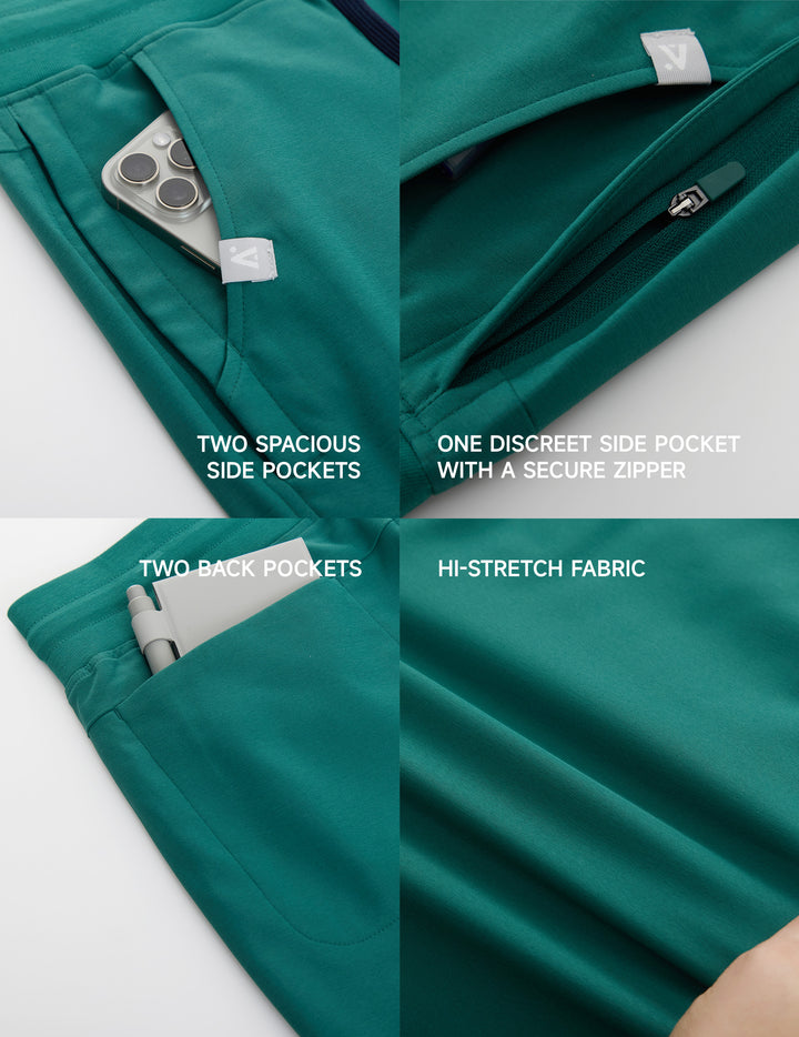 SMART FUNCTIONAL STORAGE (6 POCKETS) – With six strategically placed pockets—including two spacious side pockets, two back pockets, one discreet side pocket with a secure zipper, and a dedicated coin pocket—these joggers ensure your essentials, like stethoscopes and notepads, are always within reach.